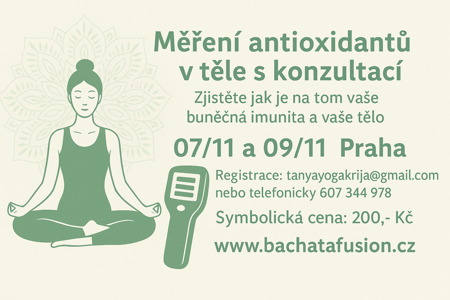 Nové termíny: Pátek 7/11/26 a 9/11/26 Zapis a čas telefonicky nebo mailem.